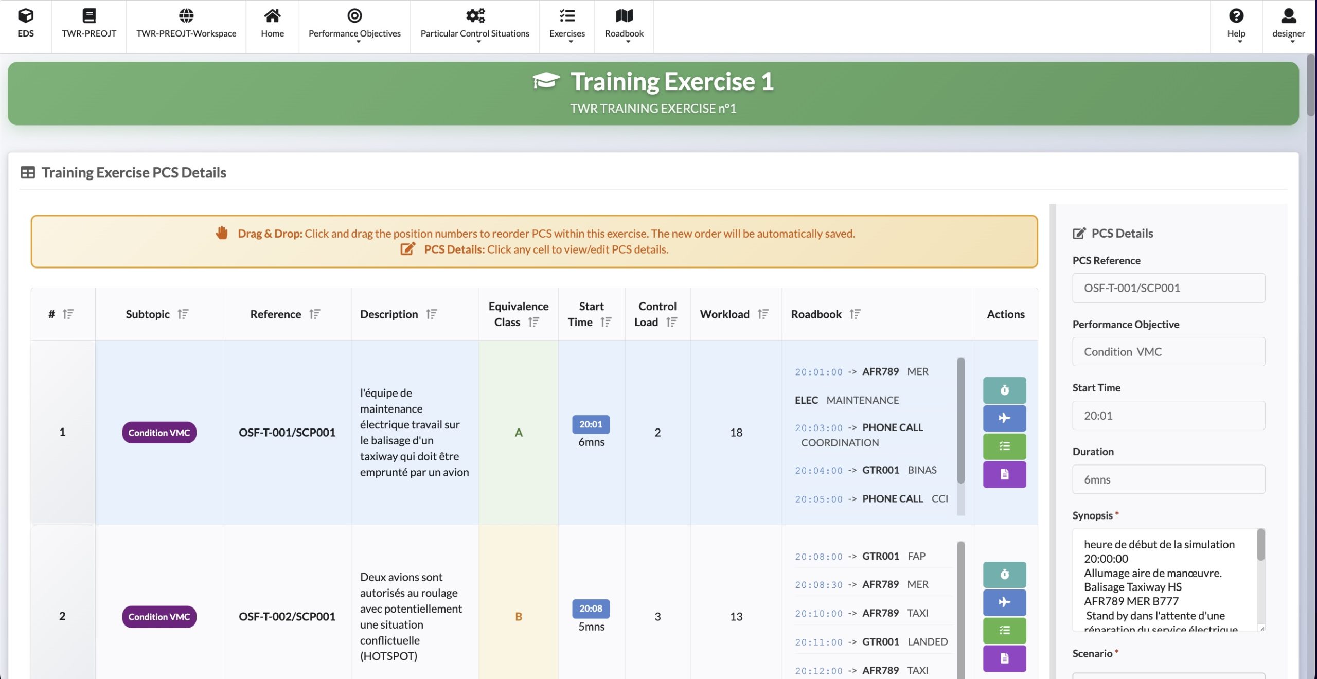 eds does not require extensive exercises creation experience from the user. The simple and intuitive interface allows any type of personel to follow the exercise creation methodology that is internationaly recommended and create ICAO compliant simulated trainings very quickly.